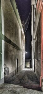 Aber dieses Gassl war auch sehr beliebt, wenn es darum ging, das oftmals hoffnungslos überfüllte Pissoir der Löwenbar zu „umschiffen“. So gab es oben regelrechte Wettkämpfe, welcher Urin-Sturzbach den Weg bis zur ansässigen Tischlerei am Fuße des Gassls als erstes bewältigt, während unten bereits die Zombieapokalypse heranwankte und die ersten Grießler- Cola Rum auch wieder das Sternenlicht erblickten. Eine Begegnungszone, bevor dieser Begriff überhaupt en vogue wurde.